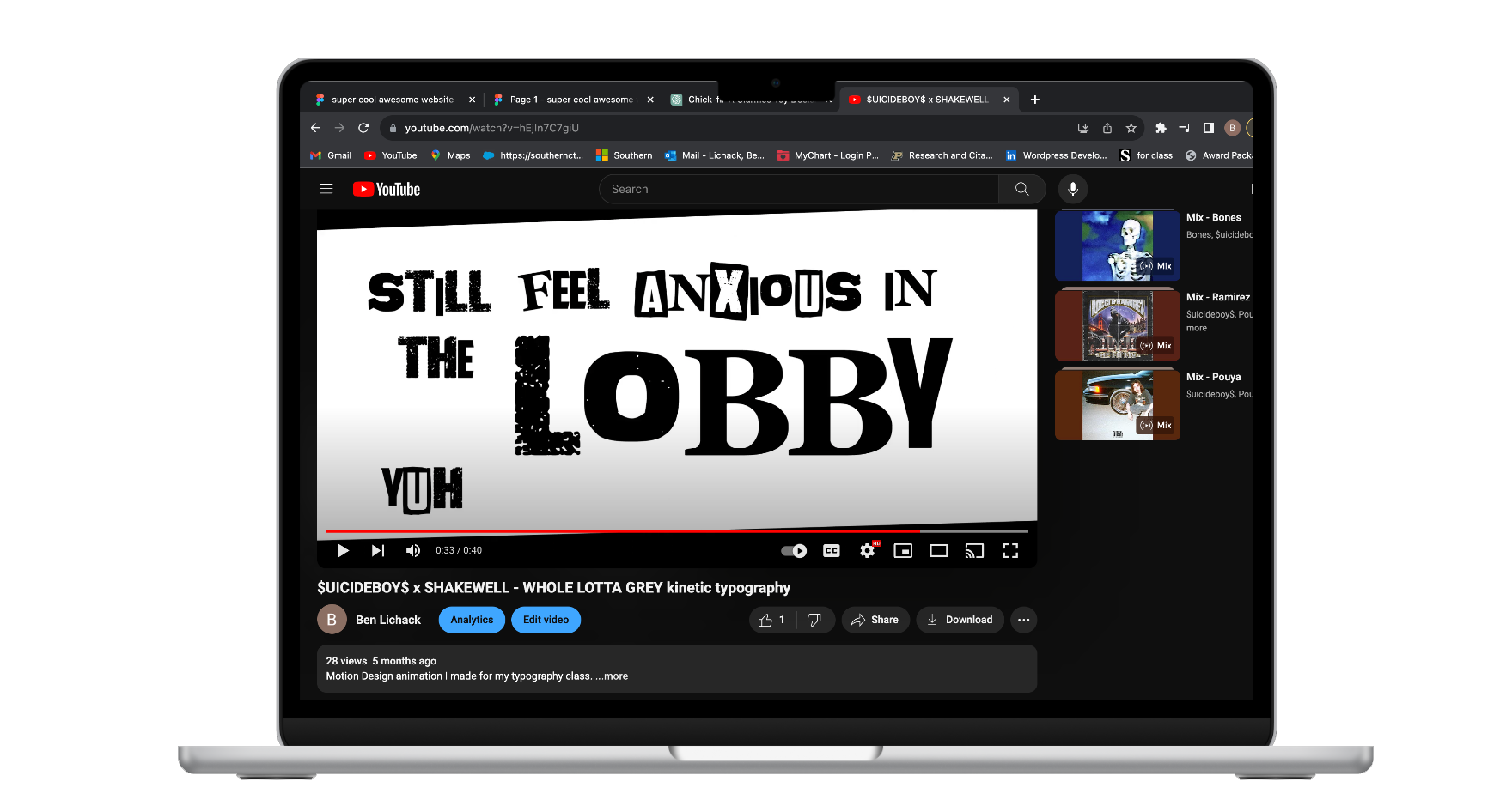 A motion design animation that was focused on creating both a visual and listening experience. I chose to use the $UICIDBOYS song “Whole lotta gray”. In total, the video runs for 40 seconds.
